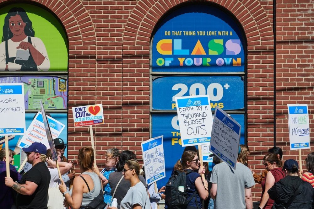 The 10,000 full-time college support staff, including library technologists, facilities and trades workers, and staff in financial aid and registrar offices, went on strike after failing to reach a new contract deal. Classes are continuing, colleges said.