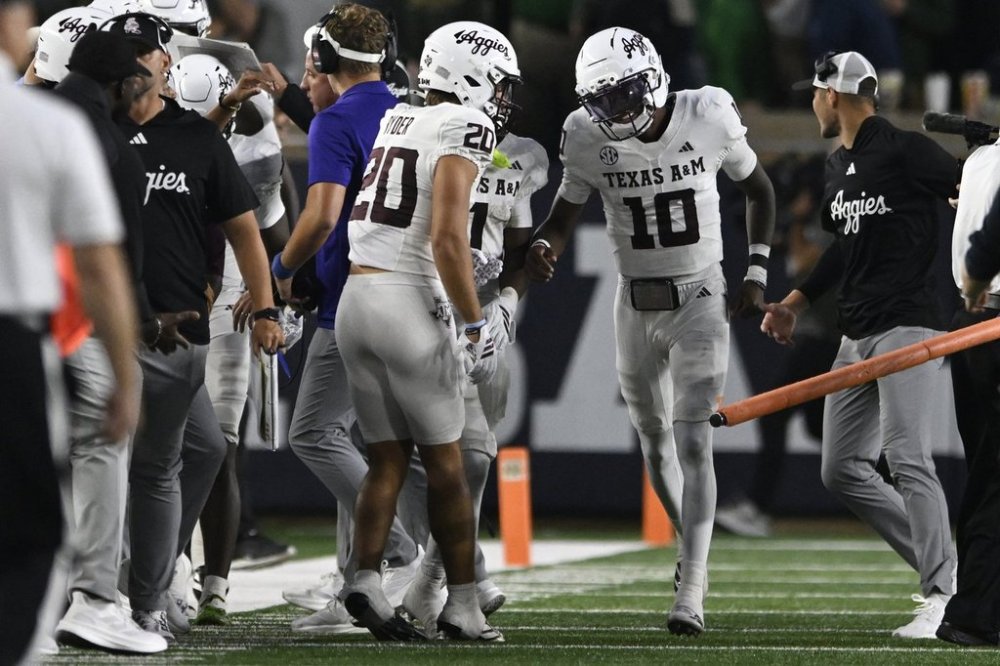 “I don’t know that anything went to script in terms of how you want to go about winning a game on the road,” said Texas A&M coach Mike Elko, a former Notre Dame assistant coach. “We just kept fighting, kept battling, kept scrapping. Ultimately, we made one more play than they did.”