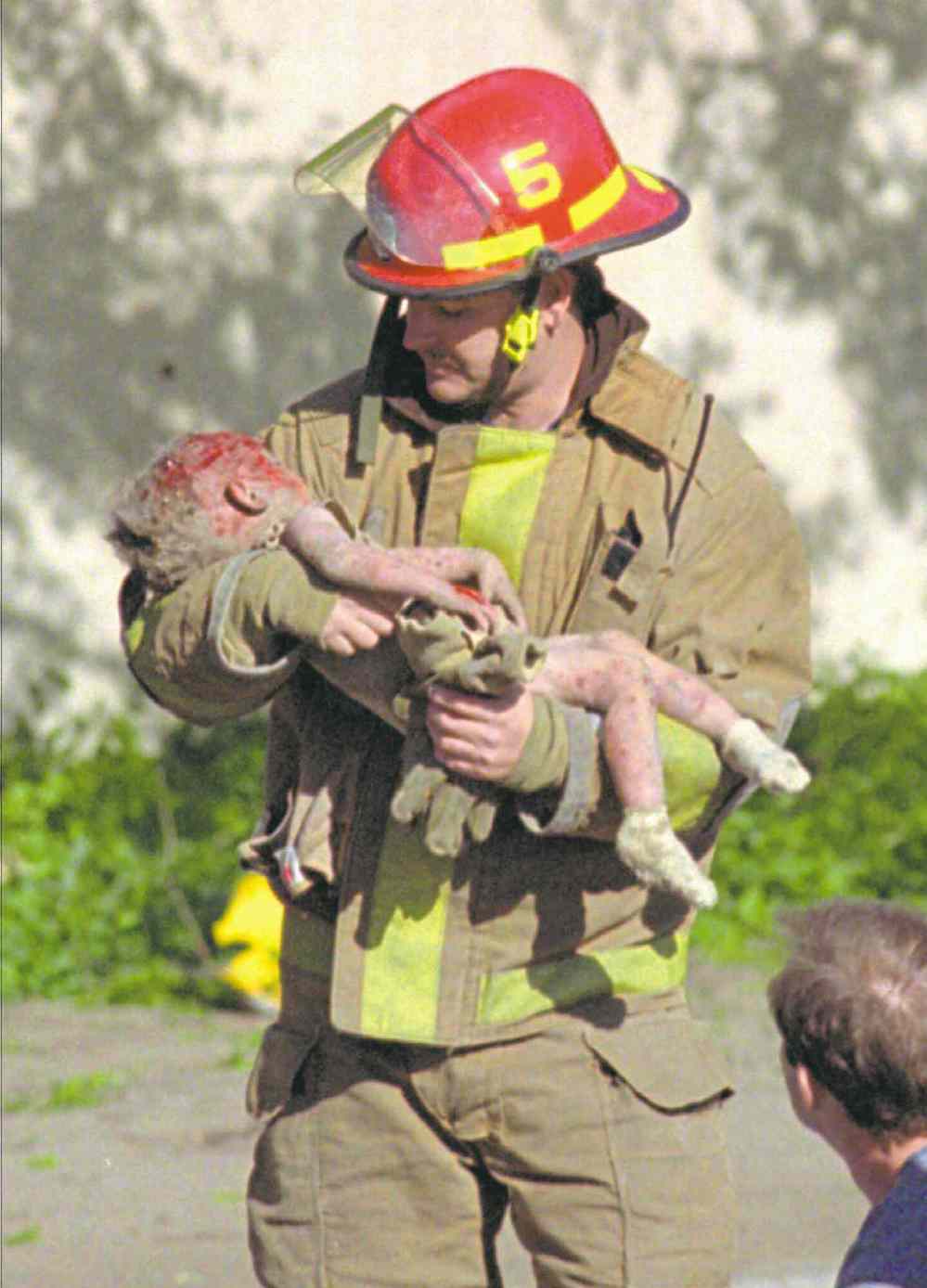 It was an iconic photo that captured the essence of one of America’s most dramatic tragedies of that decade — a firefighter clutching a bloodied young child, fatally wounded in the April 19, 1995, Oklahoma City bombing. The photo’s startling image touched a chord around the world.