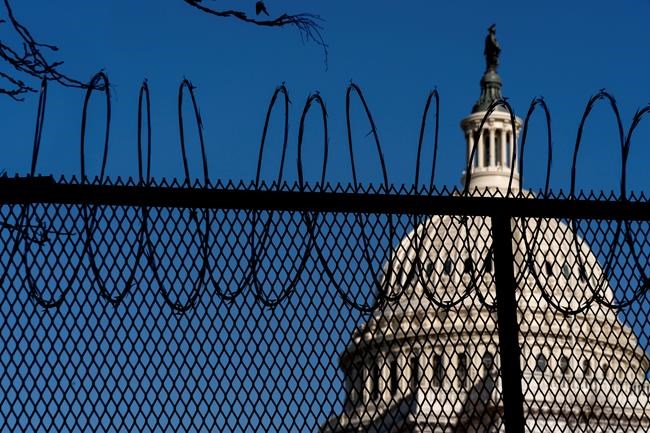The Dome of the Capitol Building is visible through razor wire installed on top of fencing on Capitol Hill in Washington, Thursday, Jan. 14, 2021. (AP Photo/Andrew Harnik)