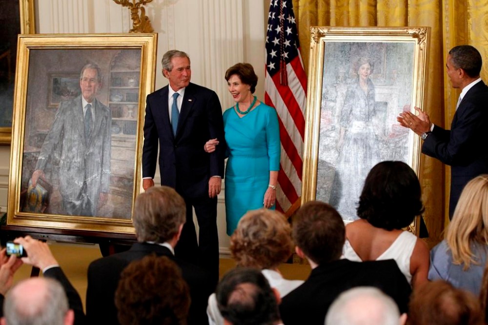 “I am pleased that my portrait brings an interesting symmetry to the White House collection. It now starts and ends with a George W,” Bush quipped at his ceremony in 2012.
