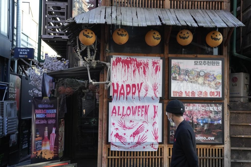 SEOUL, South Korea (AP) — In one moment, thousands of Halloween revelers crammed into the narrow, vibrant streets of Seoul’s most cosmopolitan neighborhood, eager to show off their capes, wizard hats and bat wings.