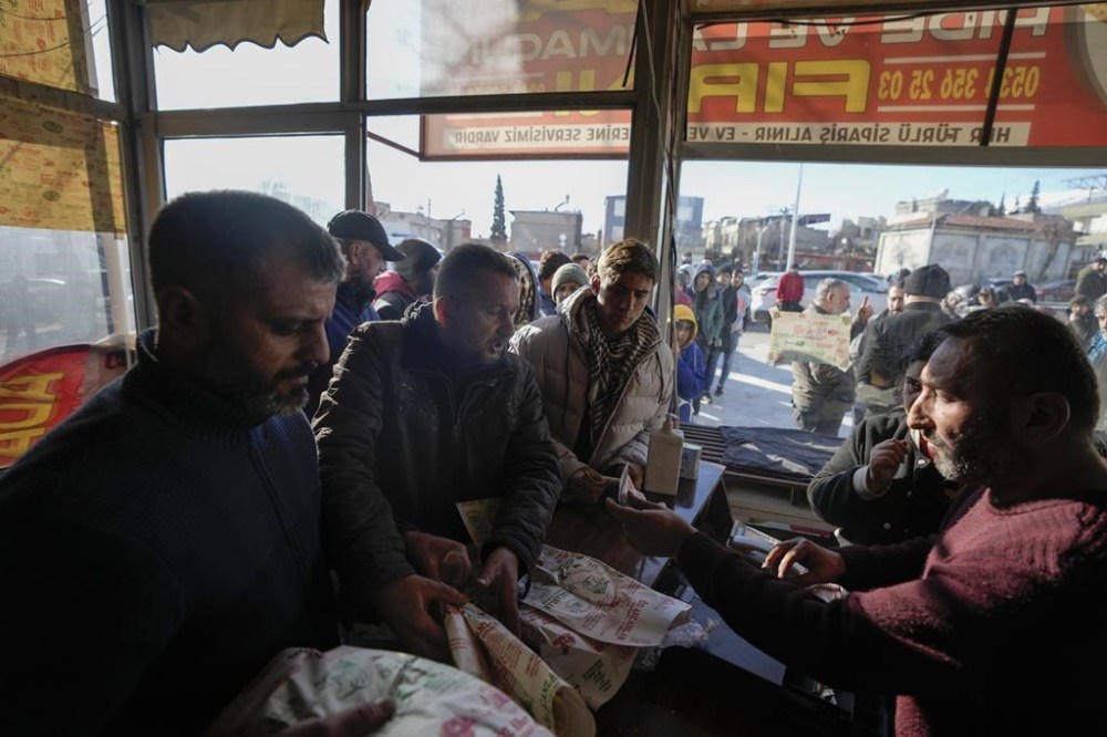 In the province of Kahramanmaras, where supermarket shelves were empty, people lined up for pita bread at a restaurant owned by Mevlut Ercan.