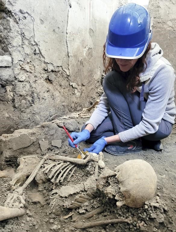 MILAN (AP) — The discovery of two skeletons buried beneath a collapsed wall in the Pompeii archaeological site point to deaths by powerful earthquakes that accompanied the devastating eruption of Mount Vesuvius in the first century, experts said Tuesday, in addition to the victims of volcanic ash and gas.