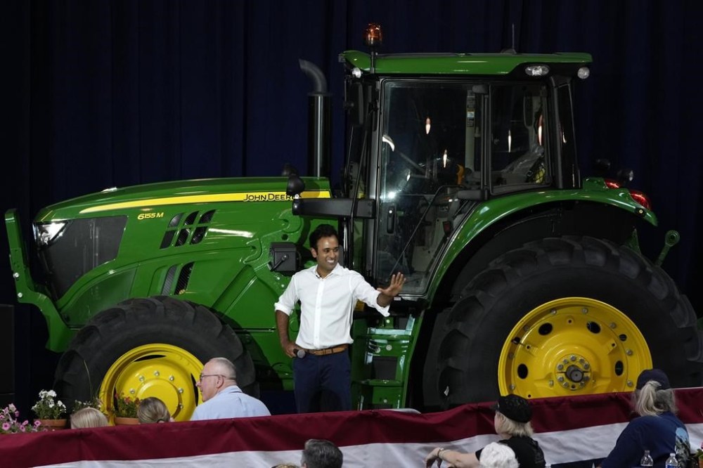 DES MOINES, Iowa (AP) — Amid plates of sliced pork, statement-making leather ensembles and piles of political T-shirts, eight Republican presidential hopefuls descended on Iowa to pitch themselves to voters and, in Mike Pence’s case, hop on a motorcycle.