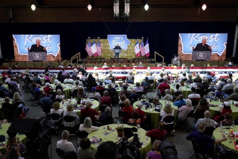 The former vice president and Florida Gov. Ron DeSantis were among the White House contenders appearing at a rally at the state fairgrounds near Des Moines hosted by U.S. Sen. Joni Ernst. Her annual political event, the “Roast and Ride” — a combination barbecue-rally and motorcycle ride — kicks off a busy summer campaign season heading into the state’s first-in-the-nation caucuses early next year.