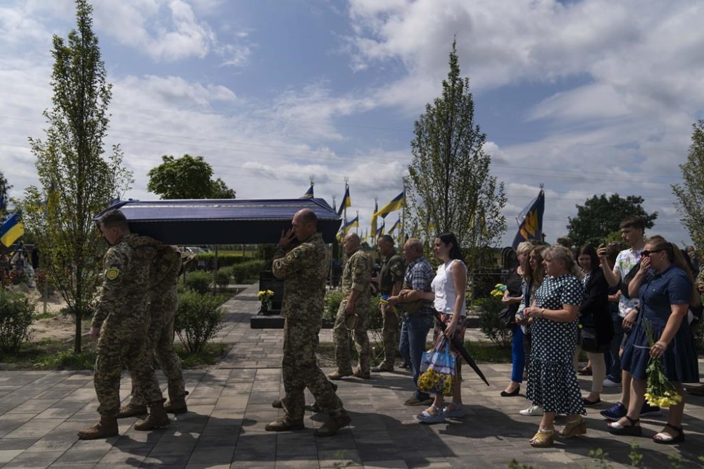 Shadlovskyi’s body was found about three months later in a mass grave along with the remains of six other people in a forest outside the city near Ukraine’s capital. Residents and relatives gathered at a Bucha cemetery on Tuesday to give him a proper burial.