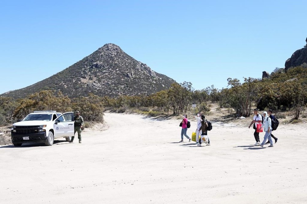 JACUMBA HOT SPRINGS, Calif. (AP) — A group of migrants from China surrendered to a Border Patrol agent in remote Southern California as gusts of wind drowned the hum of high-voltage power lines, joining others from Ecuador, Brazil, Colombia and elsewhere in a desert campsite with shelters made from tree branches.