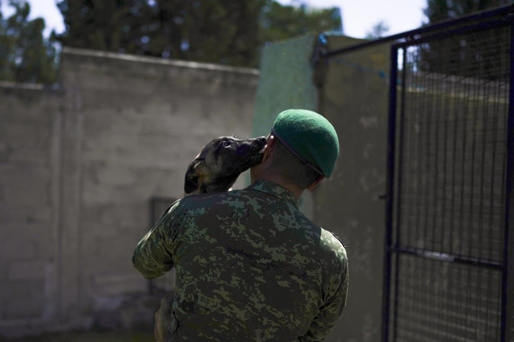 The basic training ends when the puppies are 4 months old. Then, they move to other military units to become specialists in detection of drugs or explosive, in search and rescue or in protection and security.