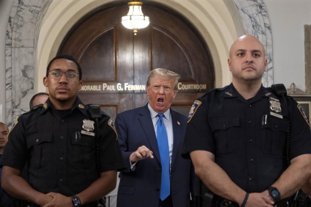 On Monday, the scene was much like the one that has played out over and over since the spring as Trump has reported to courthouses and a local jail to be processed in four criminal indictments. Once again, reporters waited in line overnight to snag seats in the courtroom; news helicopters tracked his motorcade journey from Trump Tower to the courthouse in lower Manhattan; and cable networks carried the spectacle live on TV.