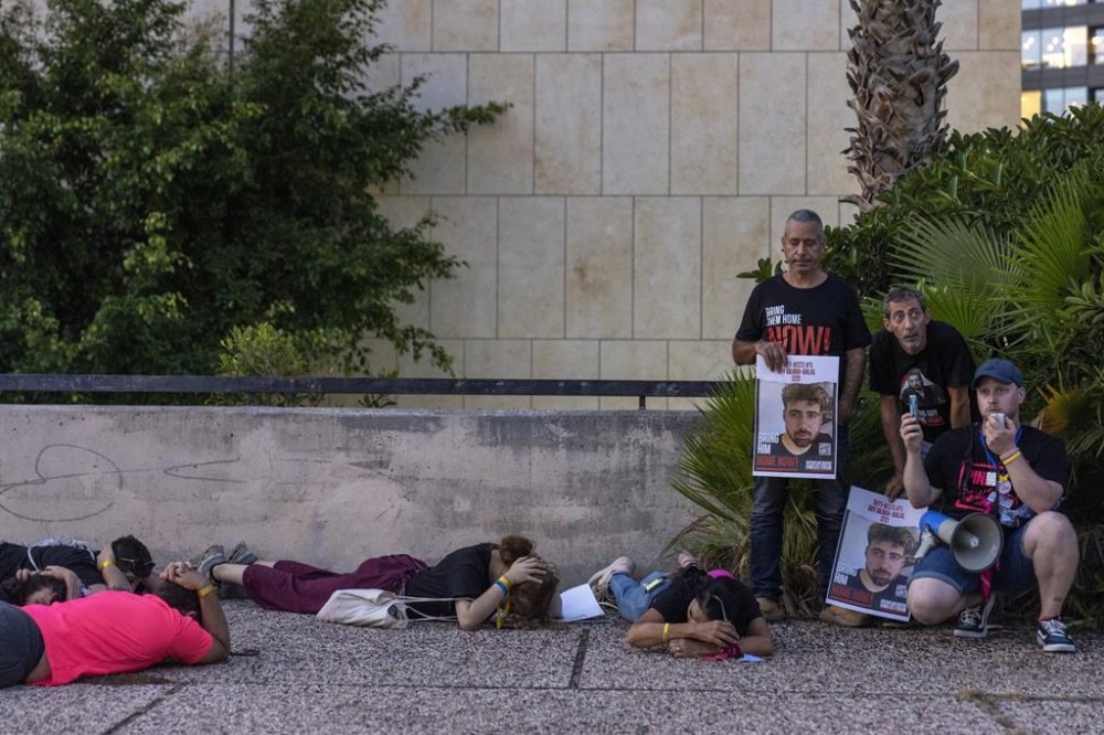 Demonstrators and family members of hostages taken from the kibbutz Kfar Azza called Thursday for their release in a street protest in Tel Aviv.