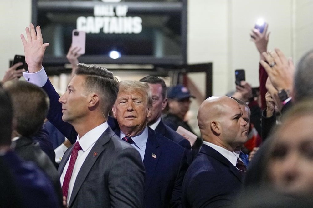 COLUMBIA, S.C. (AP) — Donald Trump used college football rivalry weekend to bask among his supporters in a state and region that are key to his presidential fortunes, while trying to upstage his Republican opponent Nikki Haley on her home turf at the Clemson-South Carolina football game.