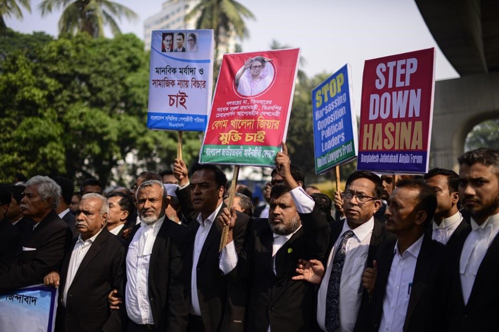 At Sunday’s protest in front of the National Press Club in downtown Dhaka, opposition activists said they do not think a fair and free election can take place under Hasina’s watch. The gathering took place weeks after a massive opposition rally on Oct. 28 turned violent.