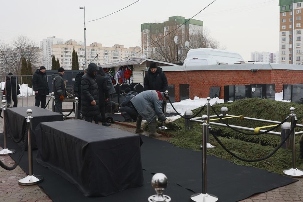 Mourners streamed by his open grave, tossing handfuls of soil onto the coffin as a large crowd waited at the cemetery’s entrance. As dusk fell, workers shoveled dirt into the grave while Lyudmila Navalnaya watched. A mound of flowers, funeral wreaths, candles and a portrait of Navalny sat nearby. Mourners continued to stream into the cemetery until it was closed by police shortly after 10 p.m. local time.