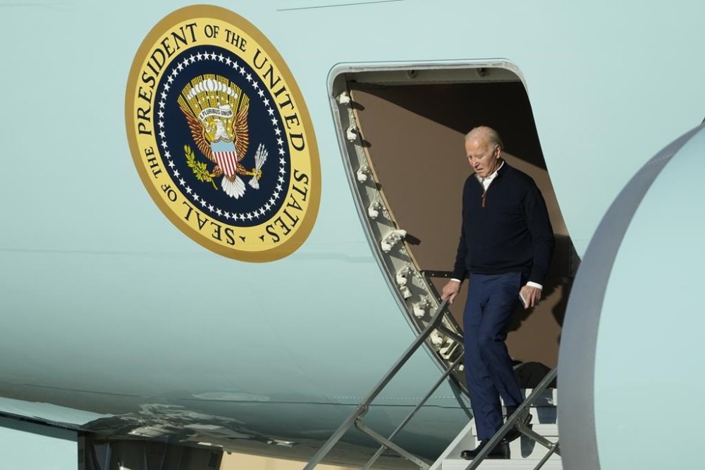 President Joe Biden walks down the steps of Air Force One at Andrews Air Force Base, Md., Monday, March 11, 2024, after returning from a trip to New Hampshire. (AP Photo/Susan Walsh)