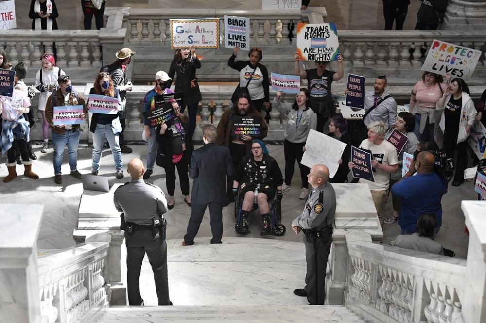 “When lawmakers are willfully stripping away civil rights, what other avenues do Kentuckians have but to protest their actions?” said Chris Hartman, executive director of the Fairness Campaign, a Kentucky-based LGBTQ+ advocacy group that led opposition to the anti-transgender bill.