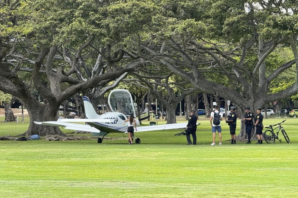 Honolulu Emergency Services Department received a call about the plane at about 3 p.m. Tuesday. Department spokesperson Shayne Enright said emergency responders determined no one was injured when the plane landed near Waikiki Shell, an amphitheater in the 200-acre (80.93-hectare) park in the shadow of the island’s iconic Diamond Head crater.