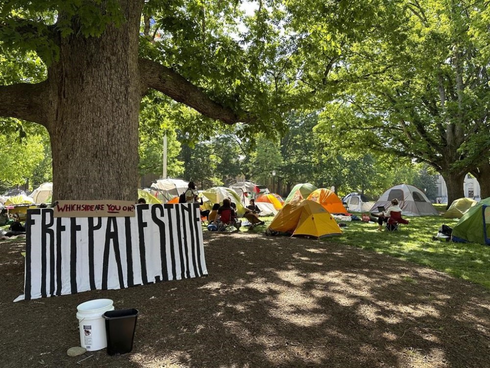 School officials initially had said protests would be limited to daylight hours but announced Monday night that students and others affiliated with the school would be allowed to stay at the makeshift encampment on the school’s public green.