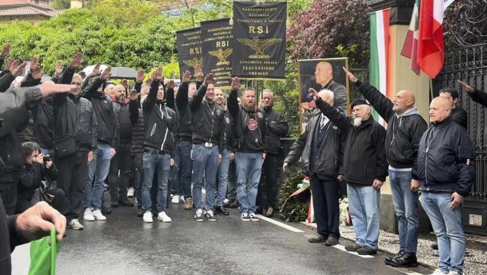 Dozens in Italy give a fascist salute on the anniversary of Mussolini’s execution