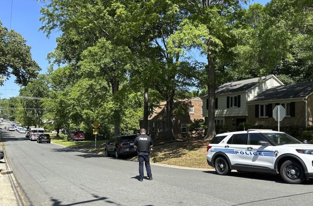 WSOC-TV said their helicopter captured an armored vehicle driving through yards and knocking over recycling bins before officers removed a person with blood on their shirt who was then loaded into an ambulance.