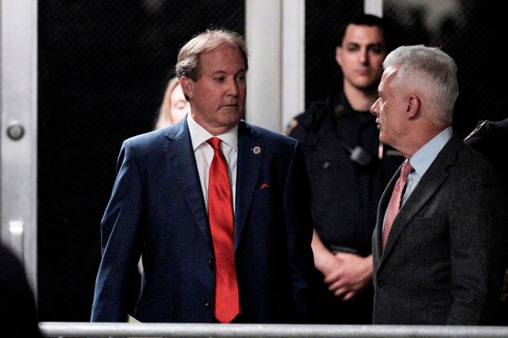 Texas Attorney General Ken Paxton arrives with former President Donald Trump at Manhattan criminal court before Trump's trial in New York, Tuesday, April 30, 2024. (Curtis Means/Pool Photo via AP)