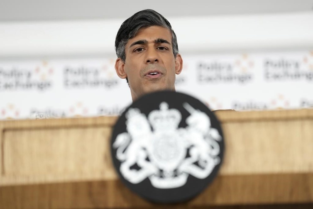 LONDON (AP) — British Prime Minister Rishi Sunak warned of a dangerous future for the U.K. in a pitch to voters Monday as he fights to hang on to power ahead of a national election that could see Conservatives ousted after 14 years.