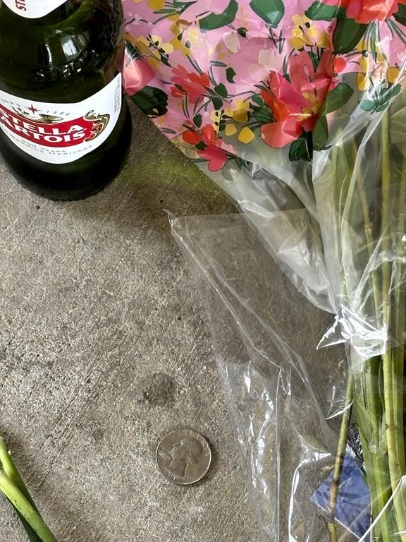 One visitor left an open Stella Artois beer. Others left combat boots, bouquets and an American flag. Shells from 105mm and 30mm rounds like those that Fortson handled as a gunner on the unit’s AC-130J special operations aircraft stand on each side of the door — the empty 105mm shell is filled with flowers.