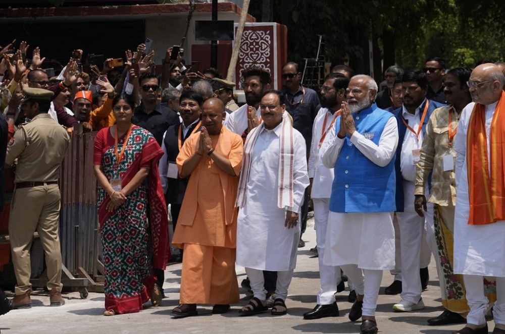VARANASI, India (AP) — Indian Prime Minister Narendra Modi was in the holy Hindu city of Varanasi on Tuesday surrounded by his party leaders and supporters as he formally filed paperwork to run in an ongoing election that is essentially a referendum on his decade in power.