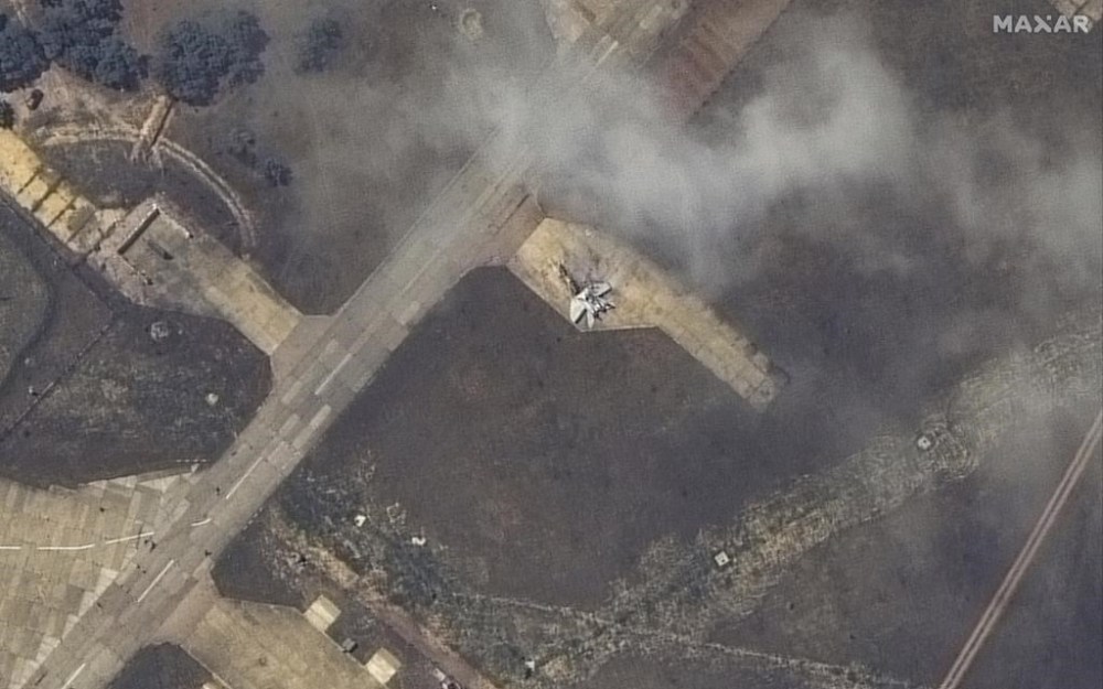 At least three fighter jets were destroyed in an earlier attack in Crimea a few days ago, according to satellite imagery of the airbase provided by Maxar Technologies.