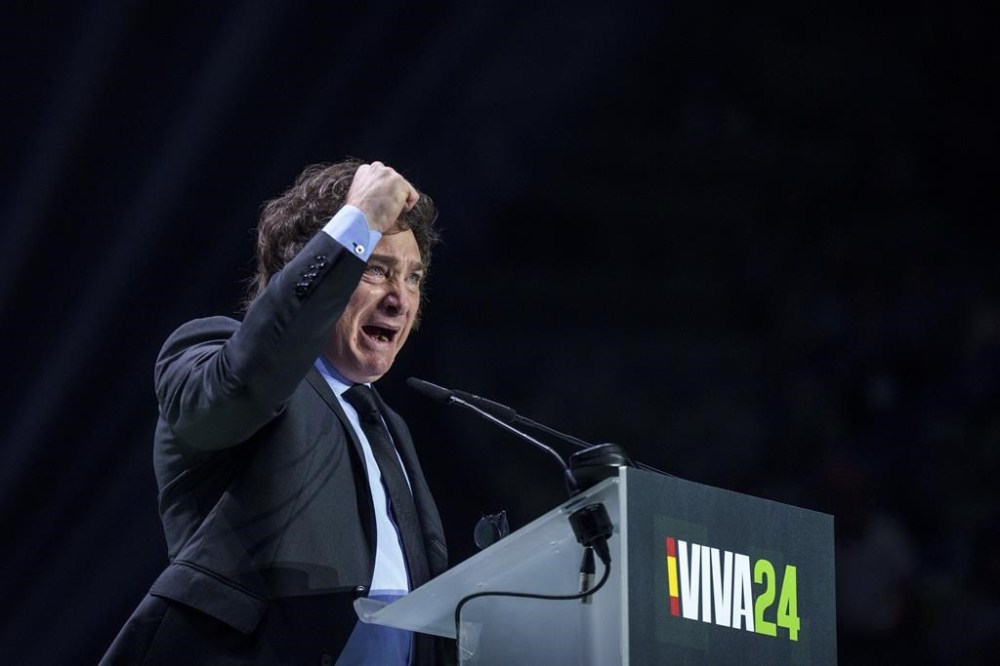 At the Vox party rally Sunday, Milei delivered his typical anti-socialism talking points and mocked Sánchez for taking a break from public view last month over corruption allegations brought by an activist group against his wife, Begona Gomez. The private group, which files lawsuits to promote far-right causes, accused Gomez of using her position to influence business deals.