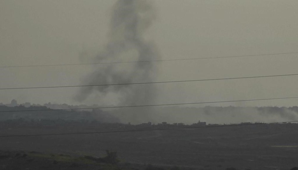 This frame grab taken from video shot in southern Israel shows smoke rising from what Palestinian medics say is an Israeli airstrike in Gaza, Sunday, May 26, 2024. (AP Photo/Josphat Kasire)