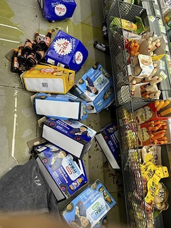 The National Fire Agency said it so far confirmed eight minor cases of property damage in Buan and the nearby city of Iksan, including cracked walls at homes and a warehouse, at least two broken wall tiles and at least one broken window. It was also strong enough to knock items off store shelves.