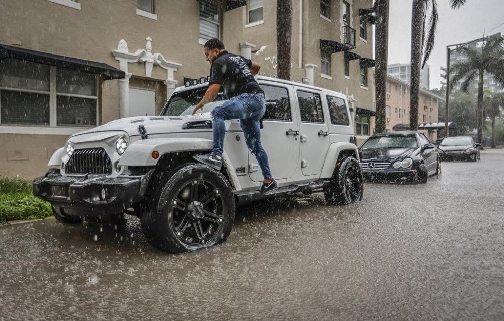 In nearby Hollywood, Mike Viesel was driving home Wednesday afternoon with his dog Humi when he was caught in deep floodwater along a low-lying street, he told the Miami Herald.