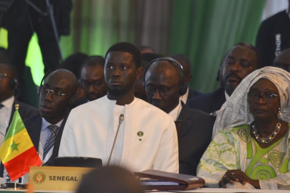 Senegal's President Basirou Diomaye Faye prior to the start of the ECOWAS meeting, in Abuja, Nigeria, Sunday, July 7, 2024. West Africa's divided regional bloc has appointed Senegal's President Basirou Diomaye Faye to dialogue with the three military junta-led member states that have left the association to try and get them back and reunite the region whose stability is under threat. (AP Photo/Olamikan Gbemiga)