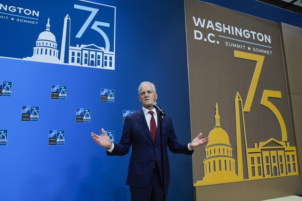 Norway's Prime Minister Jonas Gahr Store during his arrival at the NATO summit on Wednesday, July 10, 2024, in Washington. (AP Photo/Matt Rourke).