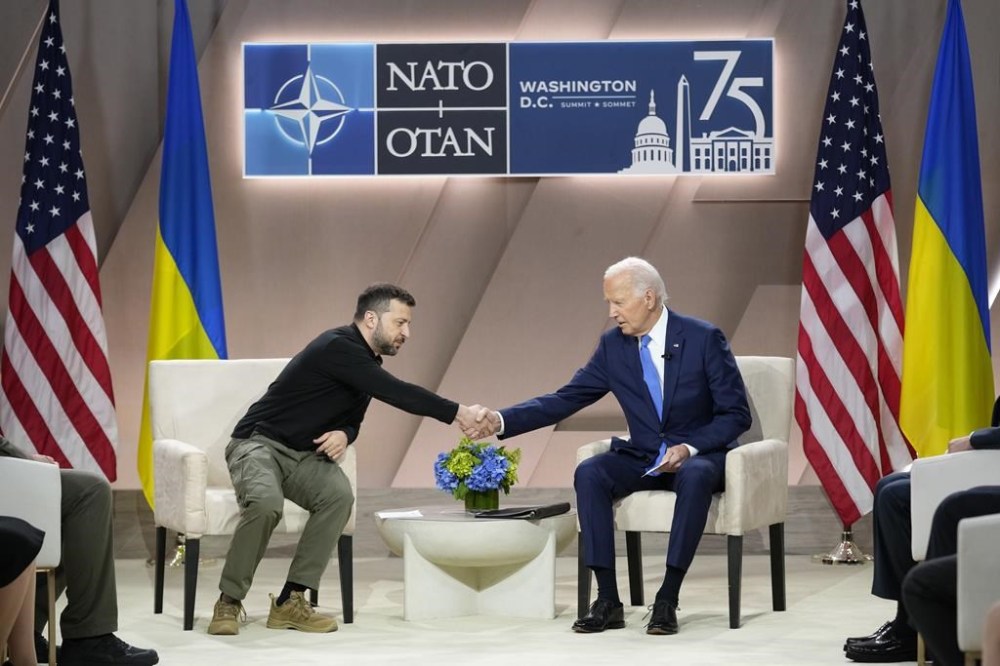 Though Zelenskyy offered public thanks for the package and a promise by NATO leaders that Ukraine is now on an “irreversible path” to membership in the military alliance, he also sounded an alarm: Ukraine cannot win the war with Russia, now in its third year, unless the U.S. ends limits on the use of its weapons to attack military targets in Russia.