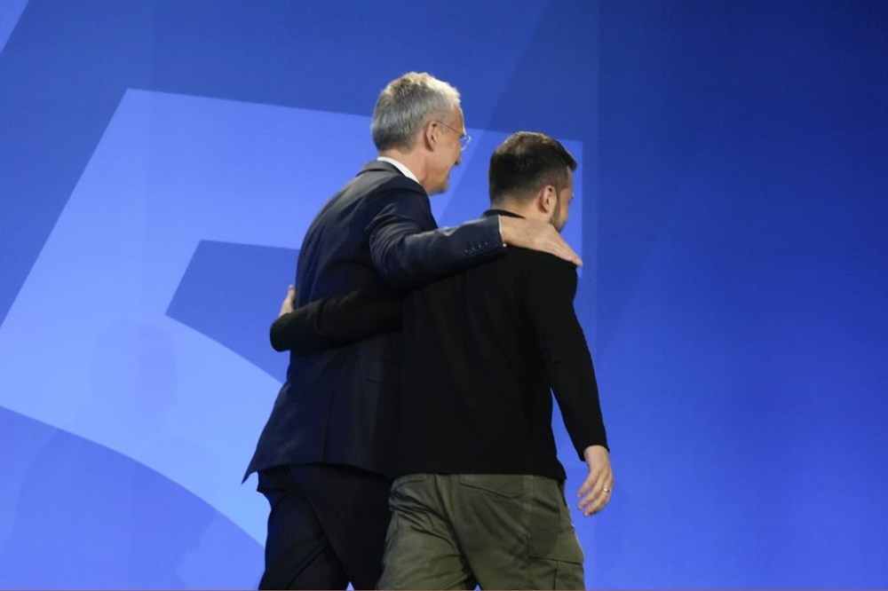 Ukraine has been the primary focus for European and North American leaders at the summit of the 75-year-old military alliance, with Biden earlier in the day announcing a new military aid package and pledging to Zelenskyy: “We will stay with you, period.”