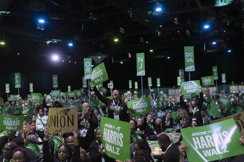 Speaking in a cavernous, dimly lit ballroom to thousands of members of the American Federation of State, County and Municipal Employees — many dressed in green union T-shirts, and waving Harris-Walz placards — Walz said he and Vice President Kamala Harris want to spread collective bargaining and other worker protections to “every state in the union.”