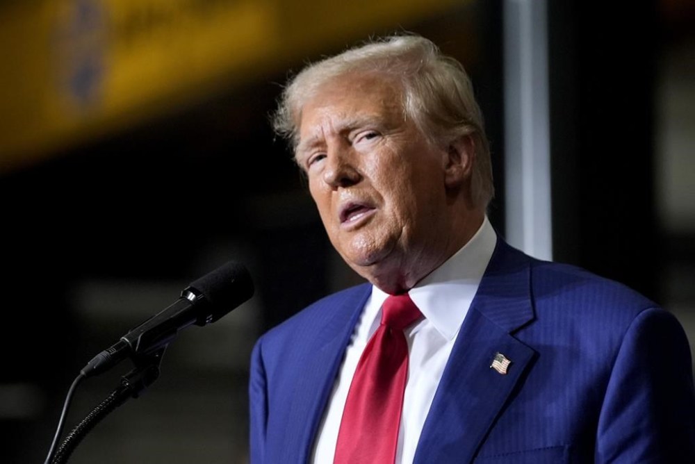 Trump’s first stop was Alro Steel in Potterville, Michigan, near the state capital of Lansing, where he railed against the Biden administration over inflation.