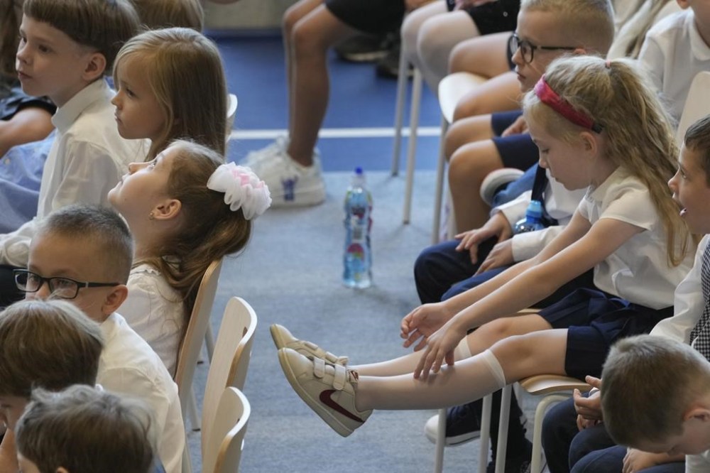 Children gather for the ceremonial first day of school in Warsaw, Poland, Monday, Sept 2, 2024. ( AP Photo/Czarek Sokolowski)