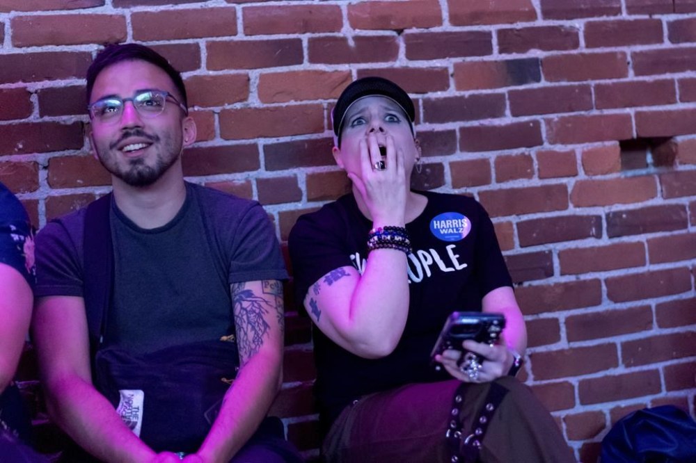 In Seattle, people gathered at Massive, a queer nightclub where scores watched the debate on a projector set up in front of the club’s large disco ball. The crowd laughed and cheered when Trump branded Harris a Marxist. More cheers when the debate moderator called out Trump’s false claim that some states legalize the killing of babies after birth.