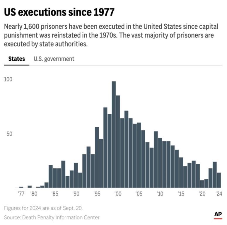 The United States has reached 1,600 executions since the death penalty was reinstated by the U.S. Supreme Court in 1976, said Robin Maher, the center’s executive director.
