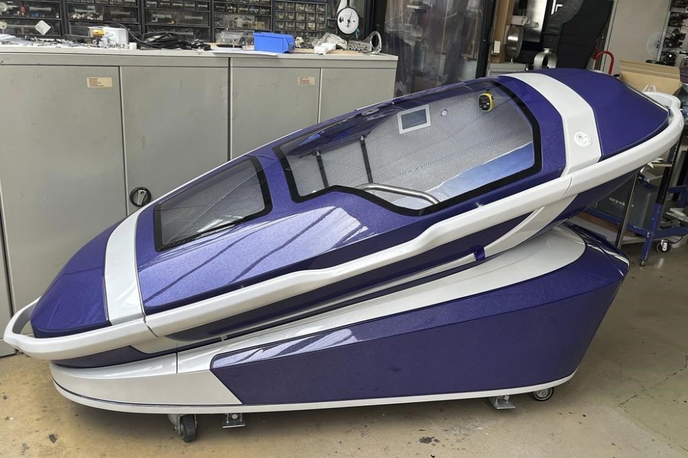 The Sarco capsule is designed to allow a person sitting in a reclining seat inside to push a button that injects nitrogen gas from a tank underneath into the sealed chamber, allowing the person to fall asleep and then die by suffocation in a few minutes.