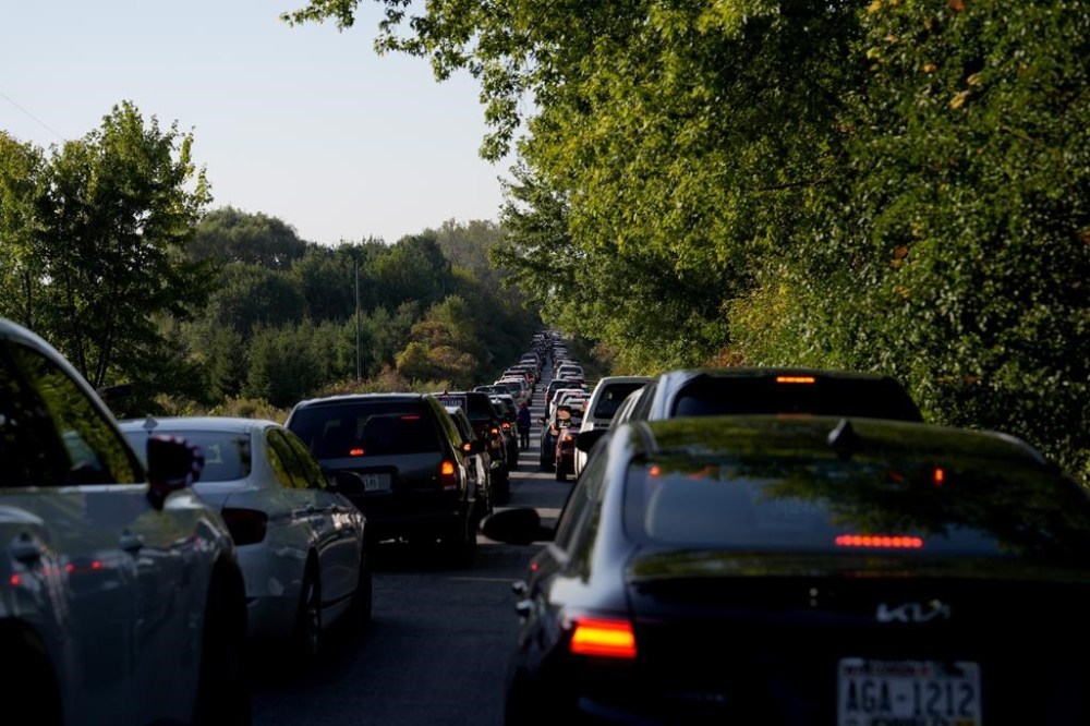Voters in Wisconsin are already casting absentee ballots and in-person early voting begins Oct. 22. Trump stood on stage for nearly two hours, touching the third rail of Wisconsin politics by overlapping with a Green Bay Packers game, drawing derision from Democrats. But that didn’t stop thousands of people from sticking with Trump as he urged supporters to begin to vote by mail and early, when the time comes, so they turn out “in record numbers.”