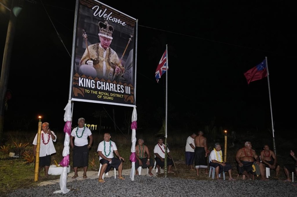 SIUMU, Samoa (AP) — In the dark, dozens of people lined a narrow road near the Samoan fishing village of Siumu, gathering near a sign bearing a portrait of King Charles III and waiting excitedly for a glimpse of the real monarch.