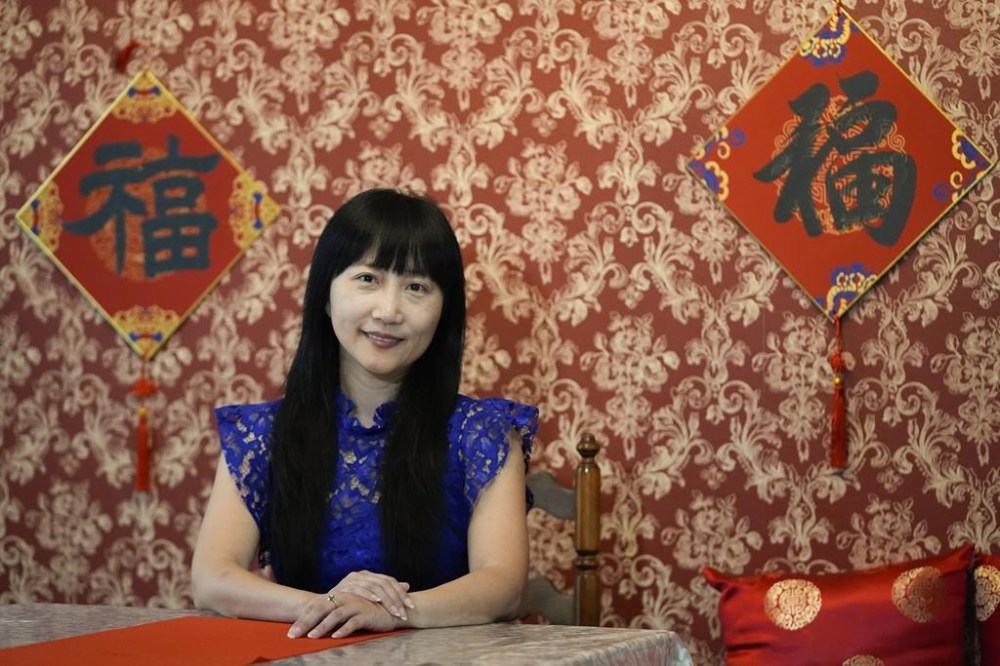 Diana Xue poses for a photo at her home Monday, Oct. 21, 2024, in Orlando, Fla. Xue is a naturalized U.S. citizen born in China who used to vote more Republican but has changed her mind after Florida passed the alien land law. (AP Photo/John Raoux)