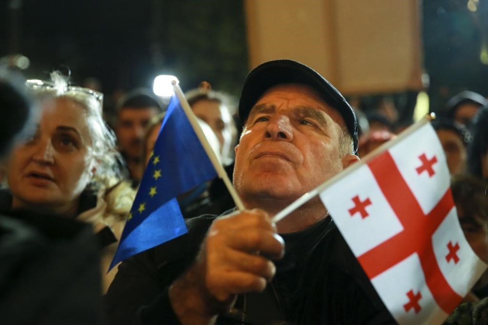 People rallied outside parliament Monday night, demanding a new election under international supervision and an investigation into the alleged vote rigging. The protest underlined tensions in the country which lies between Russia and Turkey and where the Georgian Dream party has become increasingly authoritarian and tilted toward Moscow.