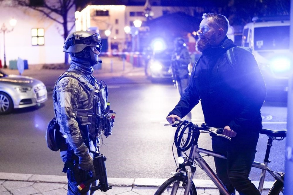 Verified bystander footage distributed by dpa showed the suspect’s arrest at a tram stop in the middle of the road. A nearby police officer pointing a handgun at the man shouted at him as he lay prone, his head arched up slightly. Other officers swarmed around the suspect and took him into custody.