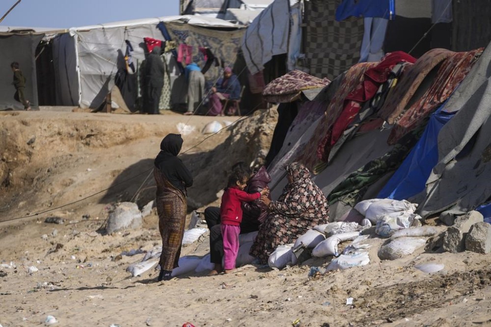 Children and adults, many barefoot, huddled Friday on the cold sand in tents whose plastic and cloth sheets whipped in the wind. Overnight temperatures can dip into the 40s Fahrenheit (below 10 Celsius), and sea spray from the Mediterranean can dampen tents just steps away.