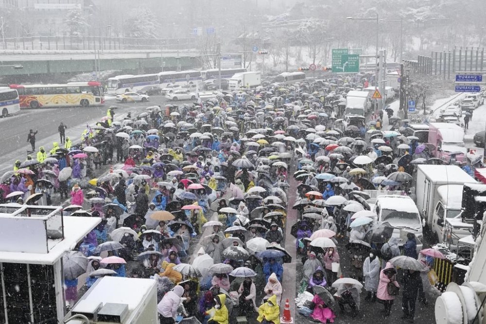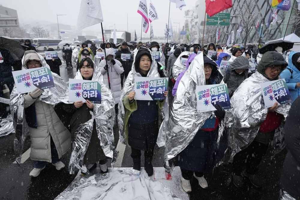 SEOUL, South Korea (AP) — Hundreds of South Koreans, bundled up against freezing temperatures and snow, rallied overnight into Sunday near the residence of impeached President Yoon Suk Yeol, calling for his ouster and arrest, as authorities prepared to renew their efforts to detain him over his short-lived martial law decree.